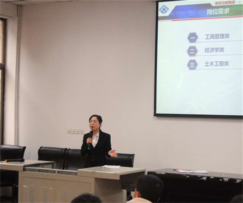 11月15日,由雅安市委、市政府主辦,雅安市委組織部、雅安市委機構(gòu)編制委員會辦公室、雅安市人力資源和社會保障局承辦的2018年“雅州英才”工程赴外招才引智高校行活動走進四川大學(xué)(望江校區(qū)),交建集團招聘代表參加了現(xiàn)場宣講活動。