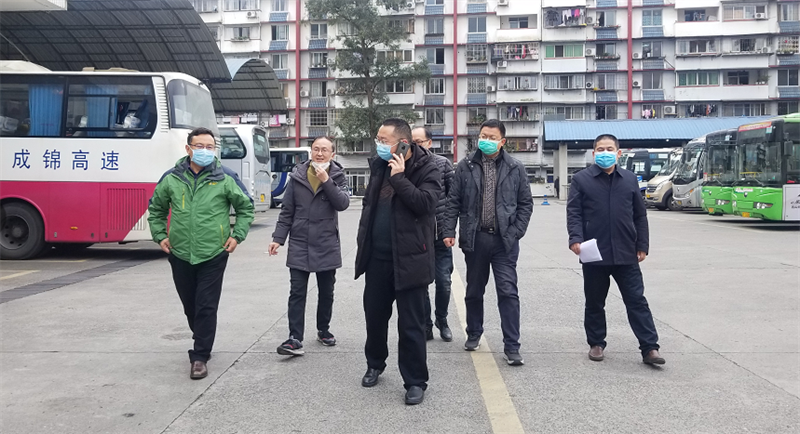 1月30日,集團(tuán)公司黨委書記、董事長(zhǎng)、疫情防控工作領(lǐng)導(dǎo)小組組長(zhǎng)漆家華等6名同志到西門車站督導(dǎo)蜀通公司客運(yùn)班車新型冠狀病毒肺炎疫情防控工作。