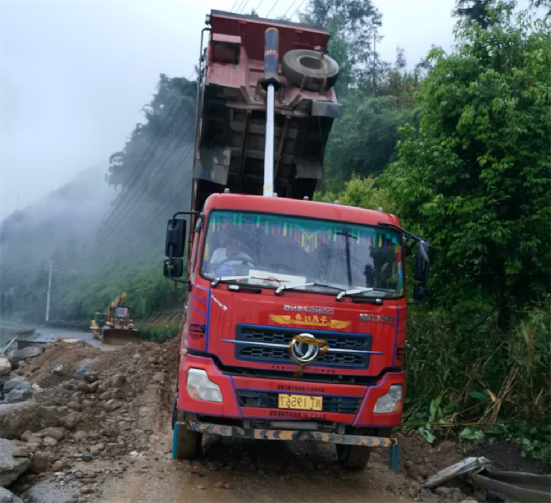 8月16日,受強降雨影響,國道351線寶興段3037公里+600米處(小地名:劍鋒電子廠)路基懸空,路面塌陷,道路中斷,情況十分緊急。 興寶公司接到寶興縣政府搶險指令后,立即啟動應急預案,執(zhí)行董事彭清翔第一時間趕赴現(xiàn)場,迅速組織12人的搶險突擊隊,攜帶挖掘機4臺、重型運輸卡車6臺,連夜對受損路段進行搶險施工,運輸投放巨石52車、連砂石13車,共計2700余噸。經過近10小時的連續(xù)奮戰(zhàn),成功排除險情。