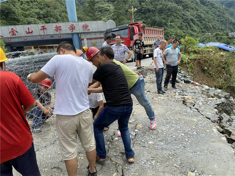 面對災情,交建路橋公司立即啟動抗洪搶險應急預案,領導班子成員迅即分赴各項目現(xiàn)場,奮力組織搶險救災。在茶地坎組織60余人,投入裝載機、挖掘機、運輸車、灑水車、發(fā)電機等各類機具車輛19臺,對駐地及施工便道進行清淤,全面噴施滅菌藥物進行消殺;在S104線組織80余人,投入機具、車輛25臺,開展施工現(xiàn)場清淤、交通協(xié)管、道路清洗等工作;在“8.22”水毀項目組織80余人的搶險突擊隊,成立9個搶險小組,投入各類機具車輛52臺,在G351線、S432線等塌方、水毀路段搶險救援,對青仁鄉(xiāng)邛蘆路道路進行清淤,疏通S106線將軍碑橋涵洞,埋制王家村應急涵管;在風鳴物流園組織20余人,投入機具車輛11臺,對草壩鎮(zhèn)、鳳鳴鄉(xiāng)部分道路、河道清淤、疏通;在G318線組織60余人,投入機具車輛16臺,排查災損損點,對坍塌路段進行搶修。