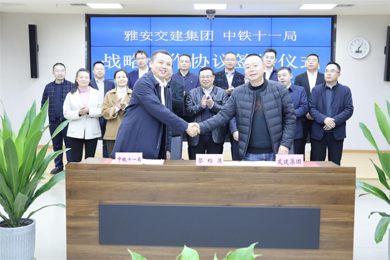 呂涵表示,中鐵十一局在承建川藏鐵路建設項目中,已與雅安交建集團建立了部分合作關系,結下了深厚友誼。希望雙方通過簽訂戰(zhàn)略合作協(xié)議,發(fā)揮各自在資源、資金、技術、人才、管理等方面優(yōu)勢,選擇符合國家法律和宏觀調控政策的合作領域,創(chuàng)新合作方式,注重合作效果,實現(xiàn)互利雙贏,建立長久友誼,共同為加快建設“川藏鐵路第一城、綠色發(fā)展示范市”、促進雅安經(jīng)濟社會發(fā)展貢獻國有企業(yè)的力量。