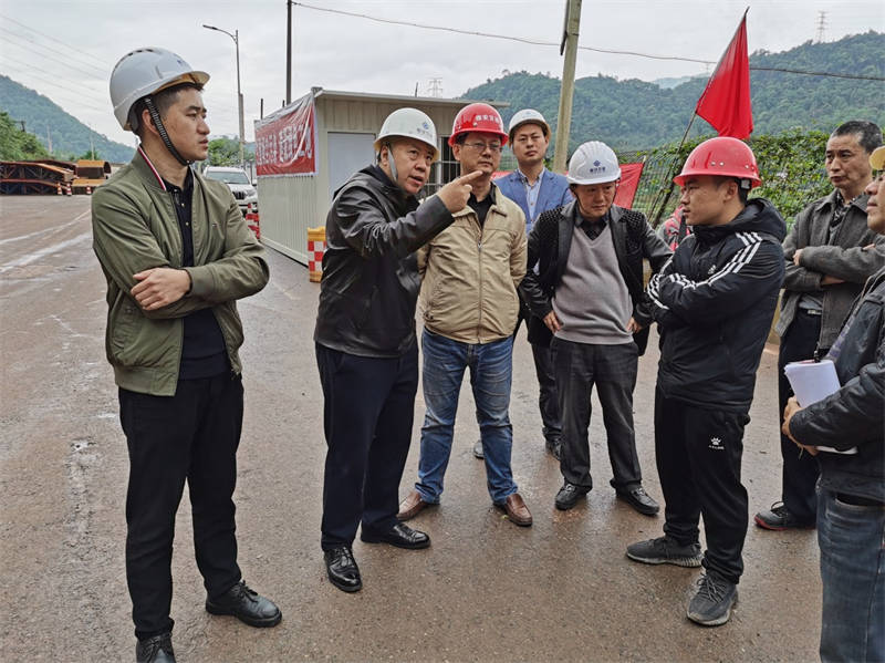 龍興現(xiàn)場(chǎng)聽取了項(xiàng)目建設(shè)有關(guān)情況的匯報(bào),詳細(xì)了解了成雅跨線橋掛籃施工工藝流程和施工過程中遇到的困難。