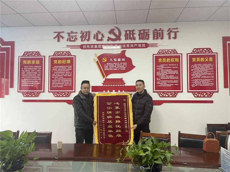 近日,贏信匯通(雅安)智能制造有限公司將一面印有“公仆情懷盡顯本色 心系企業(yè)排憂解難”的錦旗送到平順公司,對(duì)公司提供的高效、便捷、優(yōu)質(zhì)的服務(wù)表示感謝。