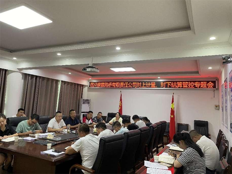 為進一步加強各項目計量結算管控工作,提高計量結算工作效率,防止不實結算、超設計結算,堵住對下結算風險。7月21日,四川康藏路橋有限責任公司召開工程項目對上計量、對下結算管控工作專題會,通報近期計量結算工作開展情況,研究分析存在的問題及下步工作措施。