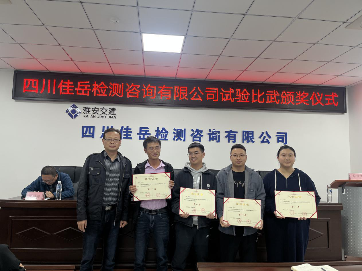 11月8日,雅安交建集團(tuán)所屬四川佳岳檢測咨詢有限公司舉行頒獎典禮,對第一屆試驗(yàn)檢測技能比武大賽進(jìn)行總結(jié)和表彰。