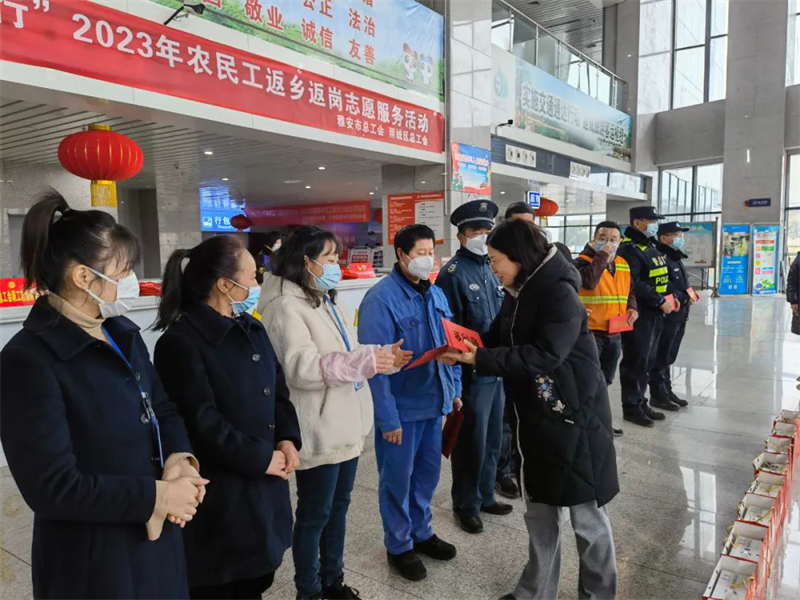 在雅安市汽車客運站,李蓉調(diào)研了工會系統(tǒng)2023年農(nóng)民工返鄉(xiāng)返崗志愿服務(wù)活動開展情況,看望慰問了民警、汽車客運站職工、保安保潔等春運一線人員,向大家致以新春祝福。李蓉要求,全市各級工會組織要統(tǒng)籌資源、精心組織,認(rèn)真做好送溫暖、農(nóng)民工返鄉(xiāng)返崗志愿服務(wù)活動等工作,切實把黨和政府的關(guān)心關(guān)懷與工會組織的溫暖送到廣大職工群眾心坎上。