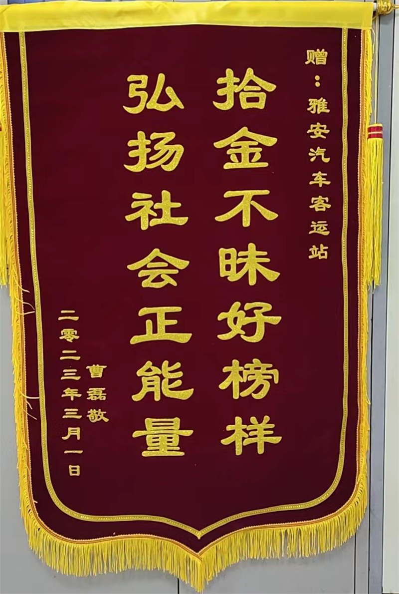 經(jīng)過(guò)幾日的多方式查詢(xún)失主信息,終于電話(huà)聯(lián)系到遠(yuǎn)在河北省的曹磊先生,在核實(shí)失主的身份和包內(nèi)物品信息無(wú)誤后,車(chē)站通過(guò)郵寄錢(qián)包及卡、微信轉(zhuǎn)賬現(xiàn)金的方式歸還失主。面對(duì)失而復(fù)得的錢(qián)包,曹先生對(duì)拾到錢(qián)包的例檢員劉孝康和車(chē)站領(lǐng)導(dǎo)表達(dá)了誠(chéng)摯的謝意。3月6 日車(chē)站收到曹磊先生郵寄的“拾金不昧好榜樣 弘揚(yáng)社會(huì)正能量”的錦旗。