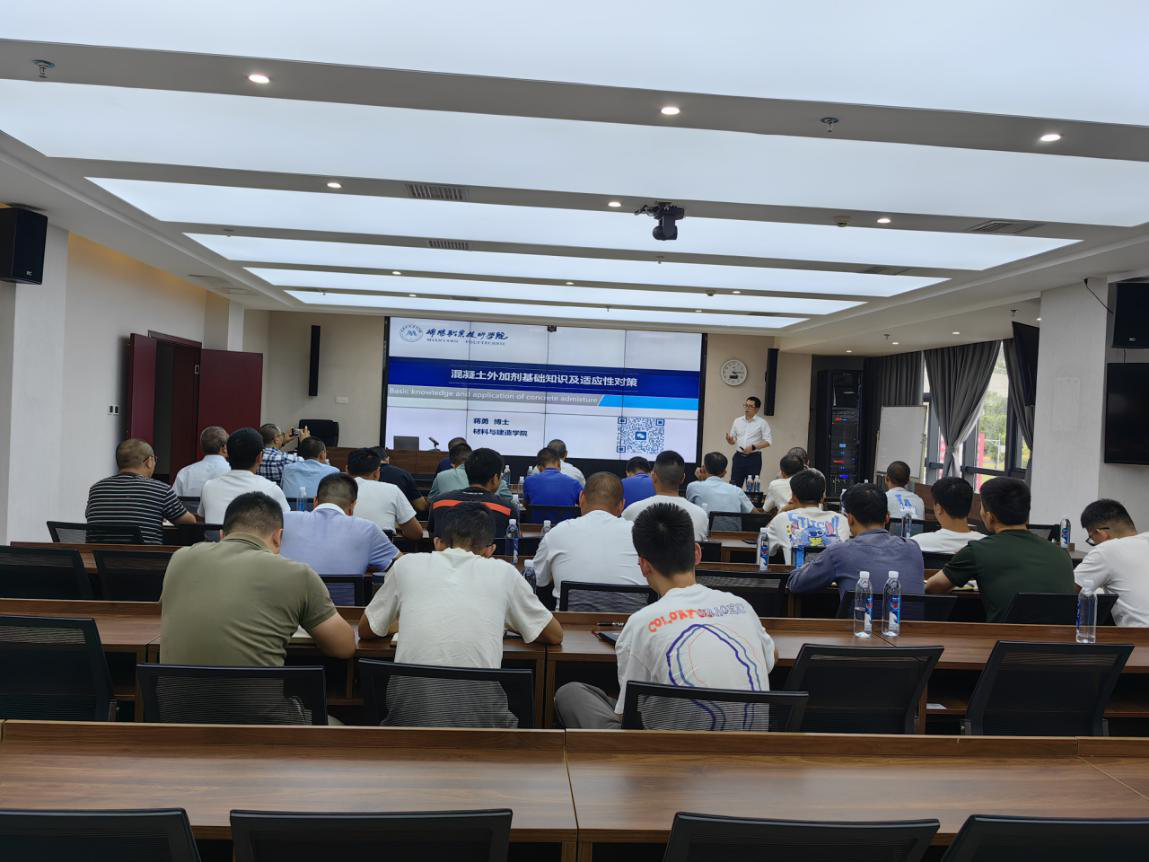 培訓(xùn)邀請綿陽職業(yè)技術(shù)學(xué)院材料與建造學(xué)院院長賈陸軍、蔣勇兩位博士授課,重點(diǎn)圍繞配合比設(shè)計中需注意的事項(xiàng)展開,詳細(xì)講解配合比設(shè)計要點(diǎn),分析原材料選擇及礦粉、粉煤灰摻合料摻配比例的重要性,總結(jié)交流機(jī)制砂在混凝土中的應(yīng)用技術(shù),講解混凝土外加劑基礎(chǔ)知識、分析目前外加劑在使用過程中適應(yīng)性問題和原因,通過真實(shí)案例分析混凝土質(zhì)量問題的原因及管控要點(diǎn)等。