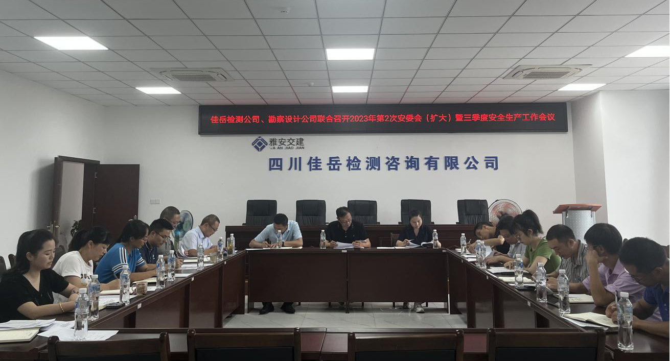 為進一步落實我司安全生產(chǎn)主體主責(zé),提高思想認識,以更加堅決的態(tài)度和防護措施,切實加強管理公司安全生產(chǎn)工作,9月7日,四川佳岳檢測咨詢有限公司、四川西康公路規(guī)劃勘察設(shè)計有限公司召開2023年三季度安委會(擴大)會議暨安全工作會議,傳達學(xué)習(xí)近期安全生產(chǎn)相關(guān)文件精神,通報安全生產(chǎn)工作開展情況,專題對安全生產(chǎn)隱患大排查大整治專項行動再安排。