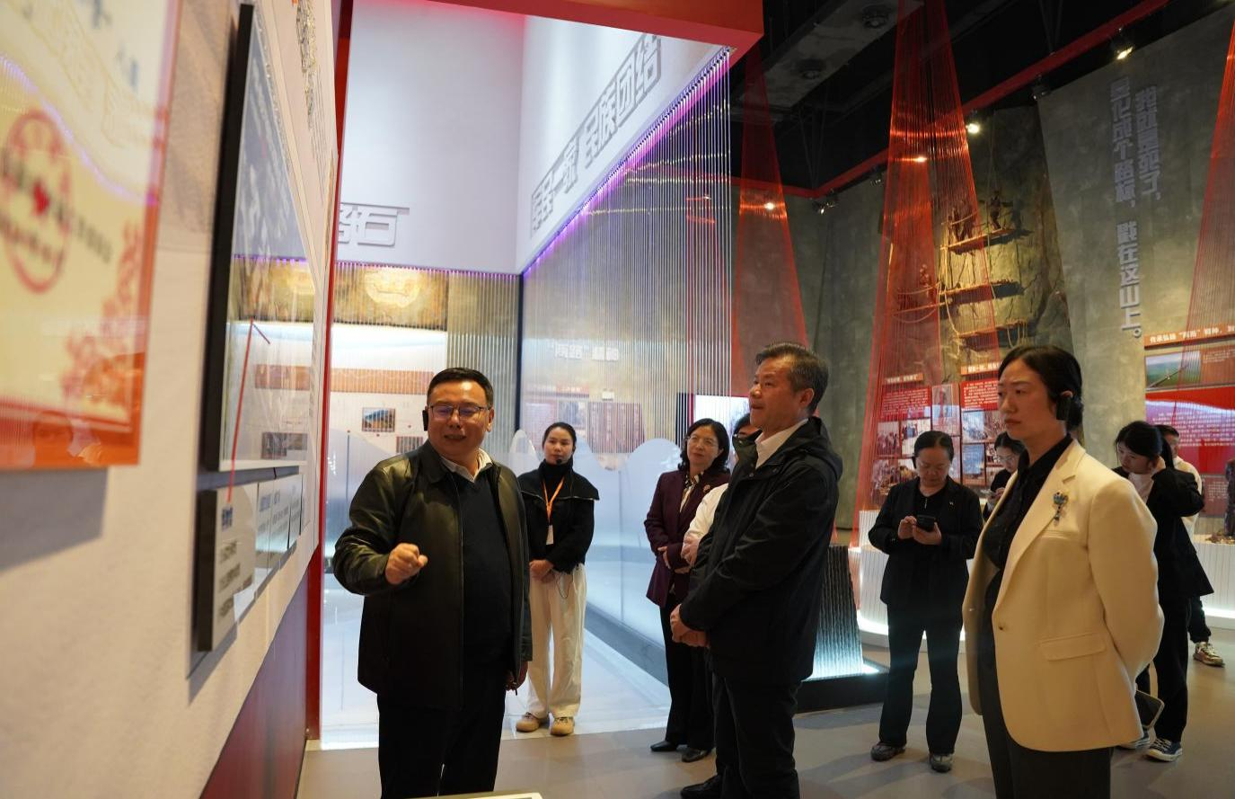 調(diào)研組先后前往了“路無窮盡”“景無止境”“游,此生必駕”及“行以致遠”四大主題展廳調(diào)研。調(diào)研中,講解員通過實物、圖片、實景模型和文字資料,全方位、多角度的展現(xiàn)了當年川藏和青藏公路建設(shè)者們克服艱難險阻、頑強拼搏的精神,生動呈現(xiàn)了國道318沿線的自然美景和生態(tài)多樣性;通過特色自駕名人堂及古今旅行裝備的對比展示,調(diào)研人員得以洞察自駕游愛好者的內(nèi)在精神世界以及自駕游裝備的演進歷程和現(xiàn)代旅行所需的基本裝備。