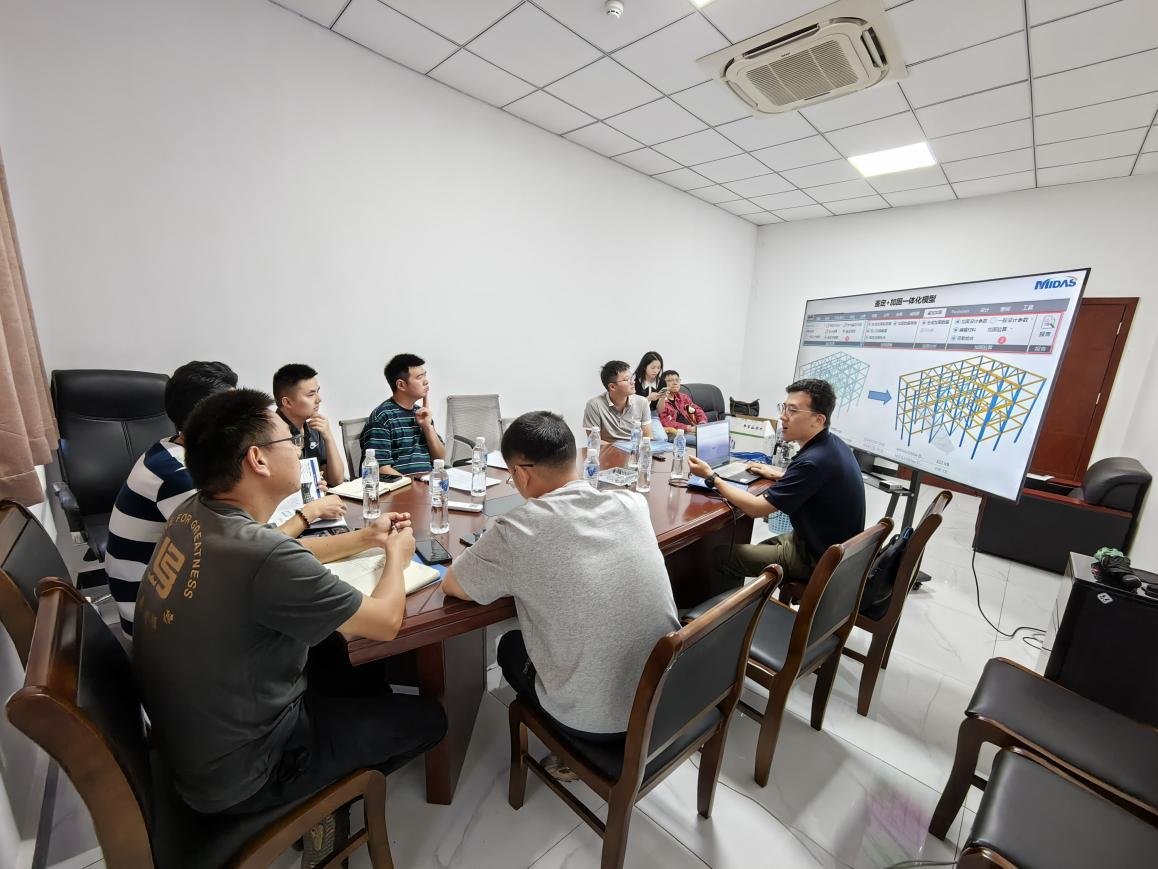在交流會上,北京邁達(dá)斯技術(shù)有限公司技術(shù)經(jīng)理張渤雨首先對Midas Gen軟件在結(jié)構(gòu)鑒定與加固解決方案的綜合應(yīng)用進(jìn)行了深入闡述,通過具體案例分析了多種建筑類型的鑒定與加固方法。專家團(tuán)隊詳細(xì)介紹了Midas Gen軟件的最新升級,涉及施工階段分析、靜力彈塑性分析、動力彈塑性分析、隔震與消能減震技術(shù),以及鋼與混凝土結(jié)構(gòu)綜合分析和鋼結(jié)構(gòu)的專業(yè)知識。交流結(jié)束后,交流雙方技術(shù)專家就鑒定業(yè)務(wù)中的常見問題進(jìn)行了深入探討。