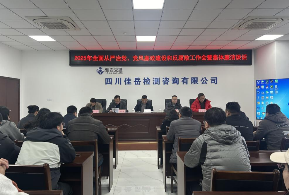 3月20日,四川佳岳檢測咨詢有限公司召開2025年全面從嚴(yán)治黨、黨風(fēng)廉政建設(shè)和反腐敗工作會暨集體廉潔談話,集團(tuán)黨委專職副書記張萬清、總工程師程學(xué)強(qiáng)參加會議并提相關(guān)要求。