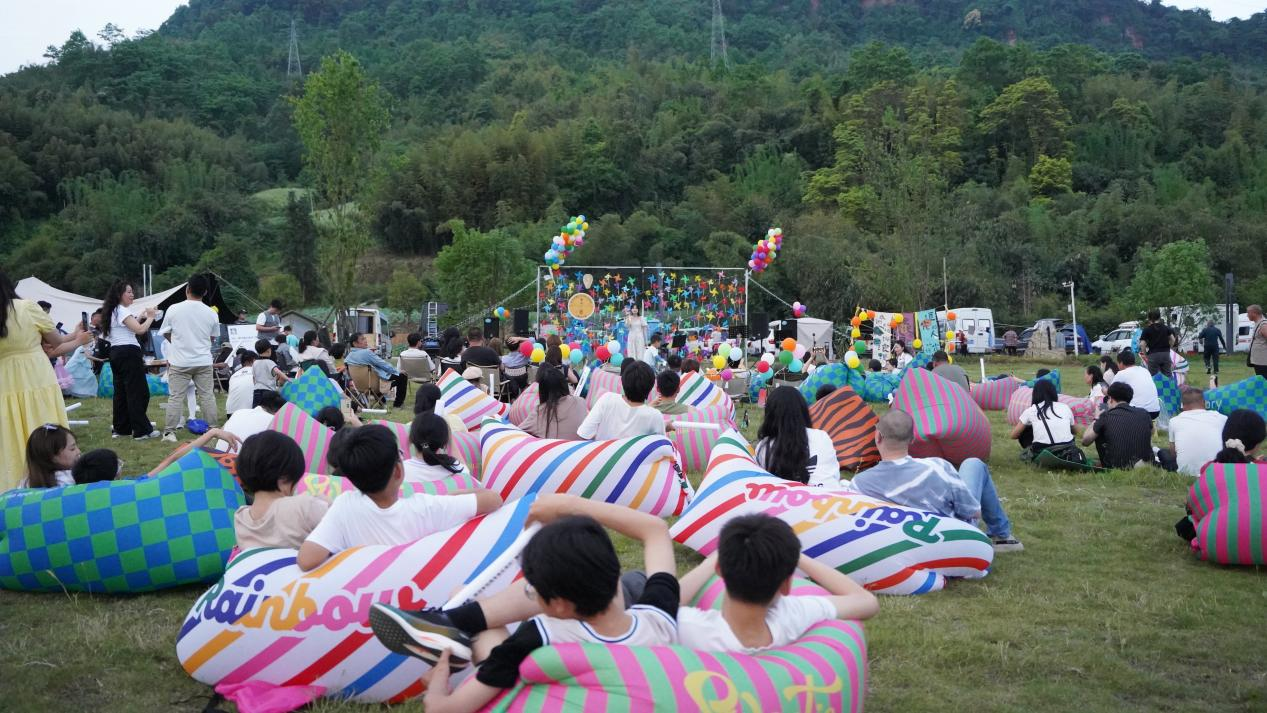 音樂會(huì)以“公路搖滾”為主題,邀請(qǐng)雅安本土知名樂隊(duì)及歌手輪番登臺(tái),演繹流行民謠、搖滾經(jīng)典及原創(chuàng)公路音樂。演出在318大本營(yíng)生態(tài)露營(yíng)地舉行,露天舞臺(tái)與自然景觀相映成趣。其中設(shè)置即興創(chuàng)作環(huán)節(jié),觀眾可參與歌詞接龍、公路故事分享,獲勝者可獲得專屬定制通關(guān)文牒、冰箱貼、鼠標(biāo)墊等文創(chuàng)產(chǎn)品。本次音樂會(huì)還特別設(shè)置動(dòng)畫電影《哪吒》放映場(chǎng),吸引親子家庭參與,掀起一波親子露營(yíng)熱潮,營(yíng)造假日休閑氛圍。