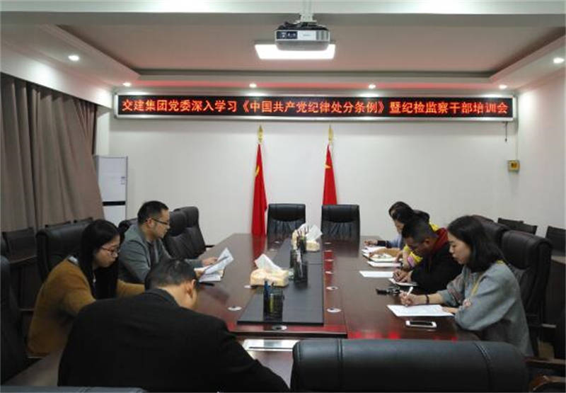 11月1日,交建集團紀檢監(jiān)察室在公司四樓會議室召開學習貫徹《中國共產黨紀律處分條例》暨紀檢監(jiān)察干部培訓會,集團黨委辦公室全體人員,各子公司黨務工作、紀檢工作人員參加培訓。