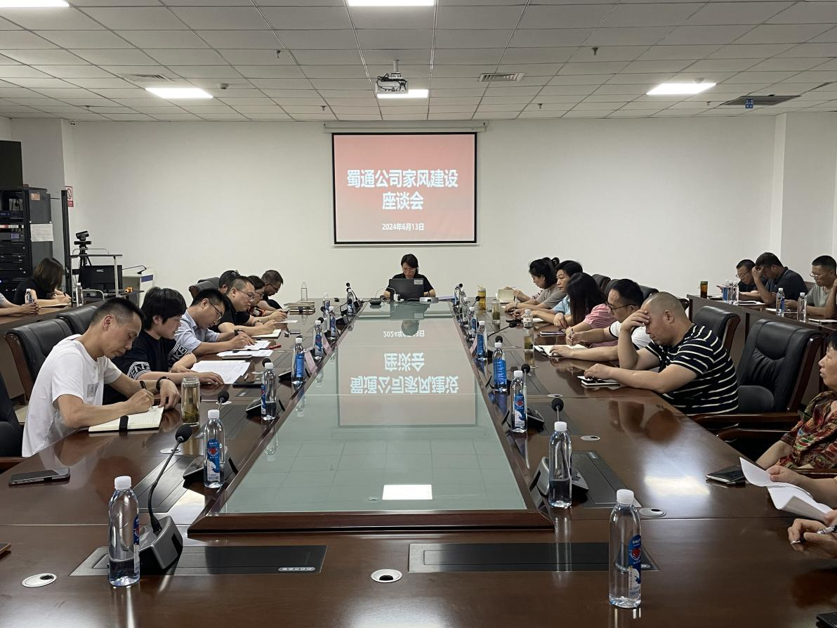 為鞏固提升“雅廉細胞”示范單位成色,6月13日蜀通公司召開2024年度家風建設(shè)座談會,引導和激勵領(lǐng)導干部家屬把家風建設(shè)擺在首要位置,廉潔修身、廉潔齊家,以優(yōu)良家風涵養(yǎng)廉政作風。蜀通公司經(jīng)營班子成員、中層干部公司部分重點崗位人員及家屬參加會議。