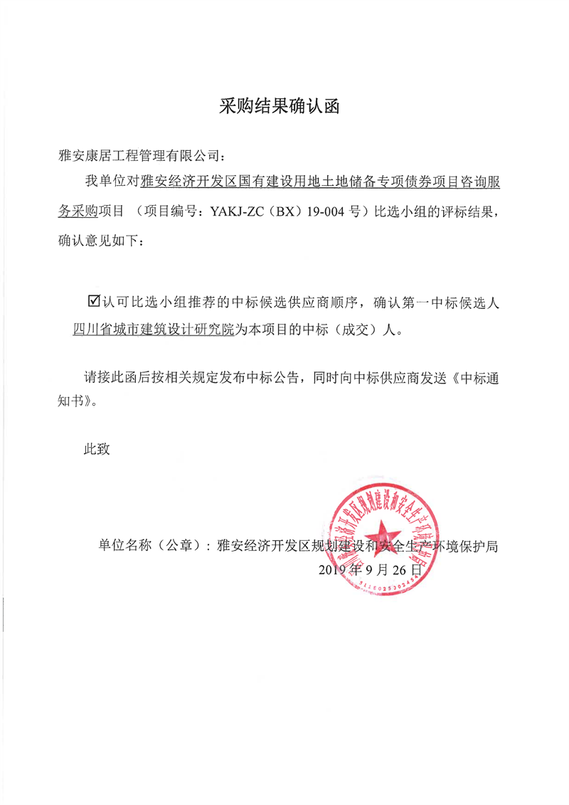 雅安經(jīng)濟(jì)開發(fā)區(qū)國有建設(shè)用地土地儲備專項債券項目咨詢服務(wù)采購比選結(jié)果公示