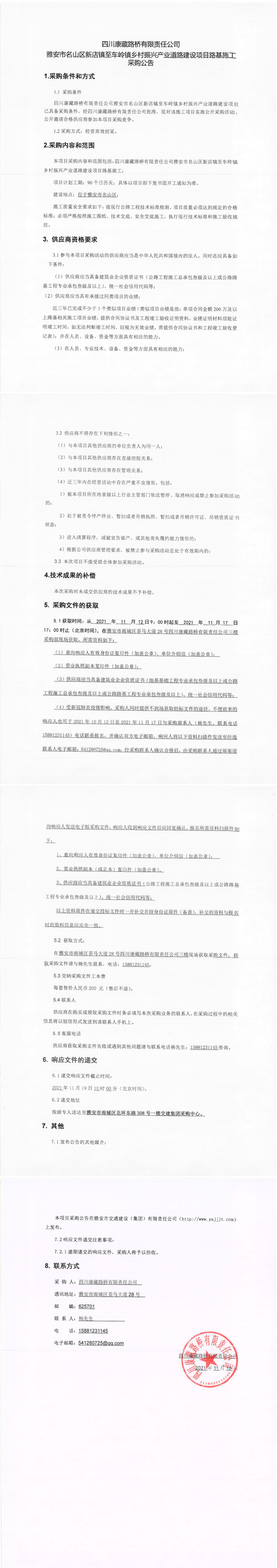 四川康藏路橋有限責任公司雅安市名山區(qū)新店鎮(zhèn)至車嶺鎮(zhèn)鄉(xiāng)村振興產業(yè)道路建設項目路面施工采購公告