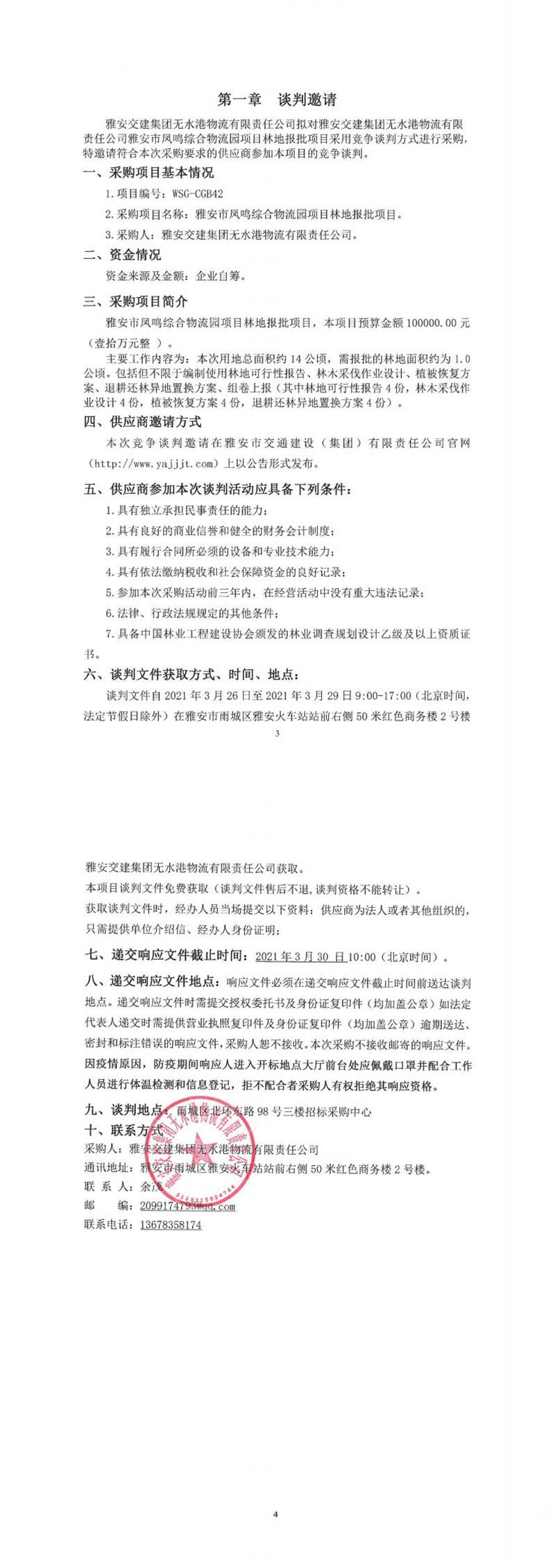 雅安交建集團無水港物流有限責(zé)任公司雅安市鳳鳴綜合物流園項目林地報批項目競爭談判公告