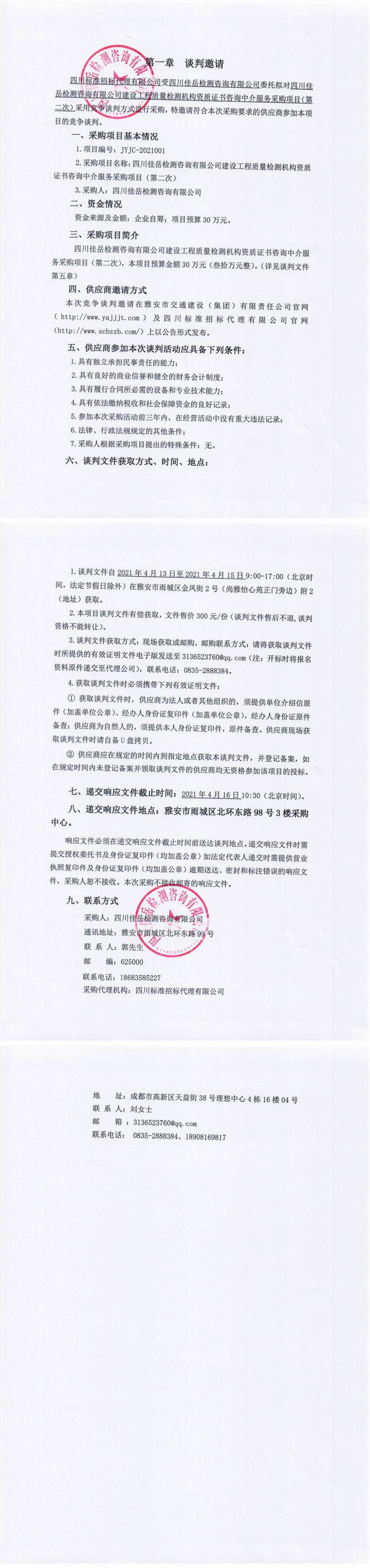 四川佳岳檢測(cè)咨詢有限公司建設(shè)工程質(zhì)量檢測(cè)機(jī)構(gòu)資質(zhì)證書咨詢中介服務(wù)采購(gòu)項(xiàng)目(第二次)競(jìng)爭(zhēng)談判公告