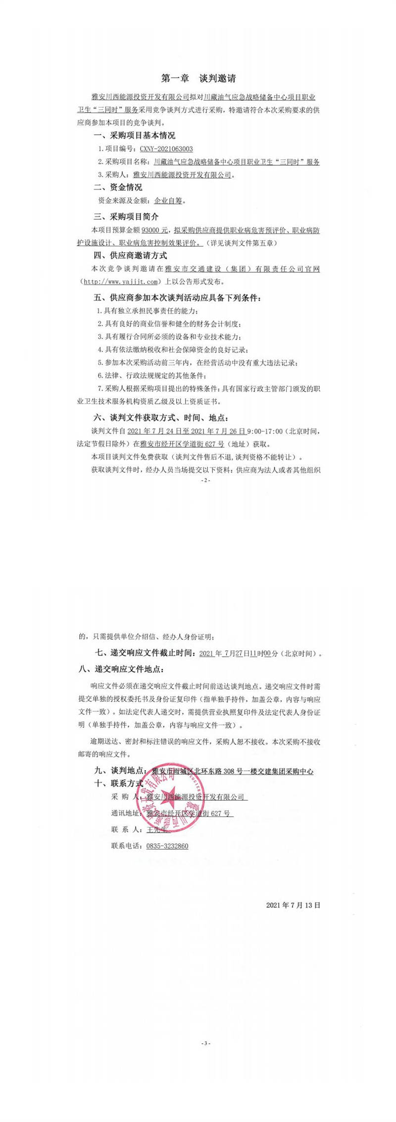 雅安川西能源投資開發(fā)有限公司川藏油氣應急戰(zhàn)略儲備中心項目職業(yè)衛(wèi)生“三同時”服務競爭談判公告