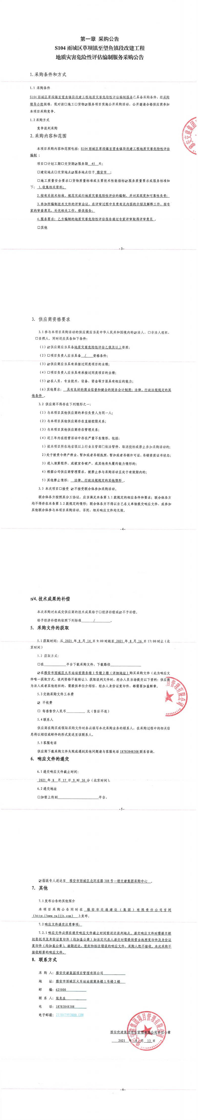 雅安交建集團(tuán)項目管理有限公司S104雨城區(qū)草壩鎮(zhèn)至望魚鎮(zhèn)段改建工程地質(zhì)災(zāi)害危險性評估編制服務(wù)采購公告