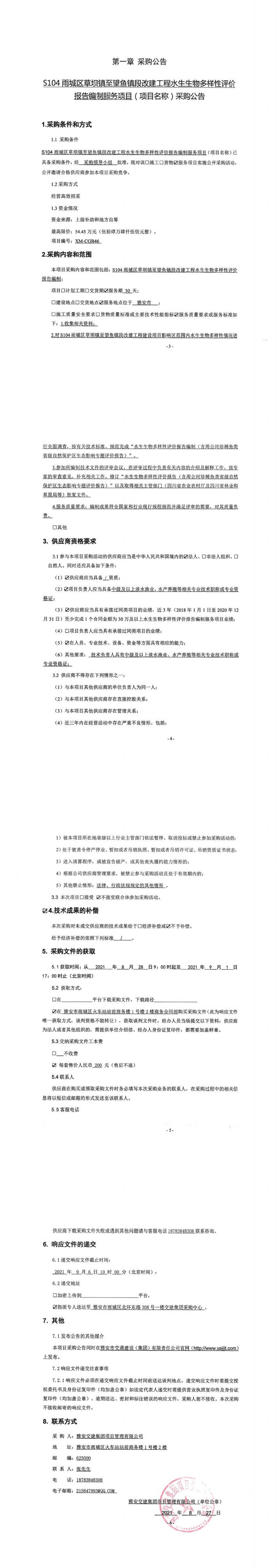 雅安交建集團(tuán)項目管理有限公司S104雨城區(qū)草壩鎮(zhèn)至望魚鎮(zhèn)段改建工程水生生物多樣性評價報告編制服務(wù)項目采購公告