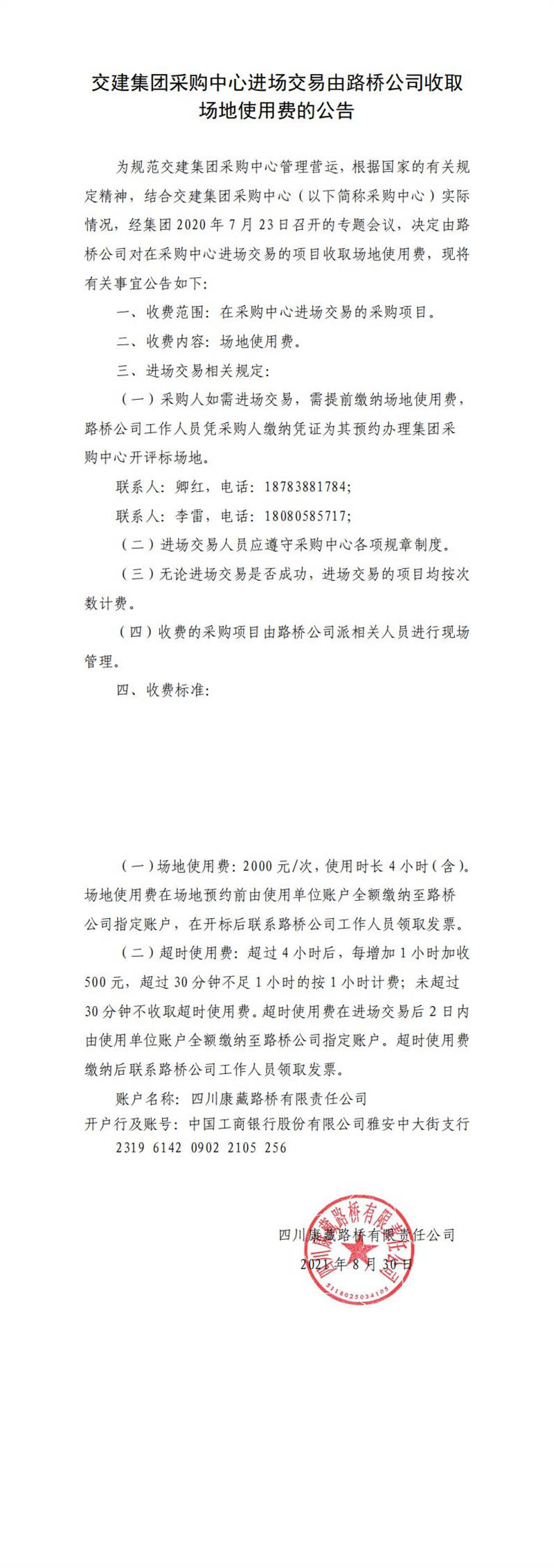 交建集團采購中心進(jìn)場交易由路橋公司收取場地使用費的公告