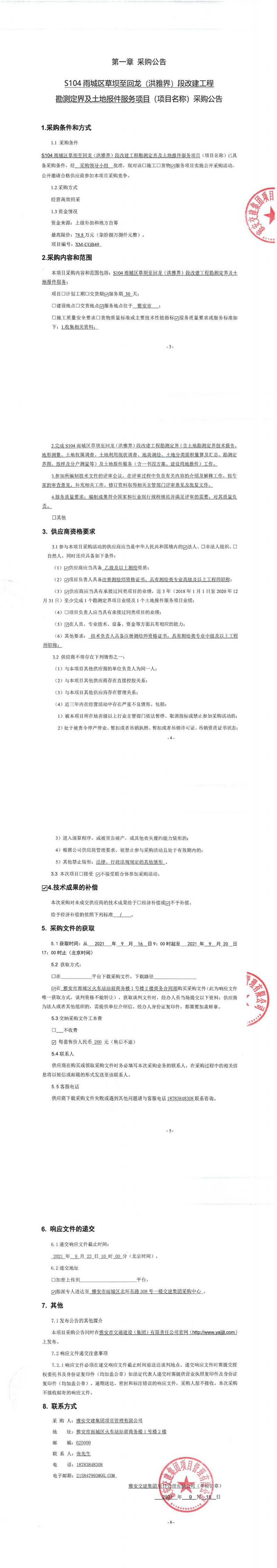 雅安交建集團項目管理有限公司S104雨城區(qū)草壩至回龍(洪雅界)段改建工程勘測定界及土地報件服務(wù)項目采購公告