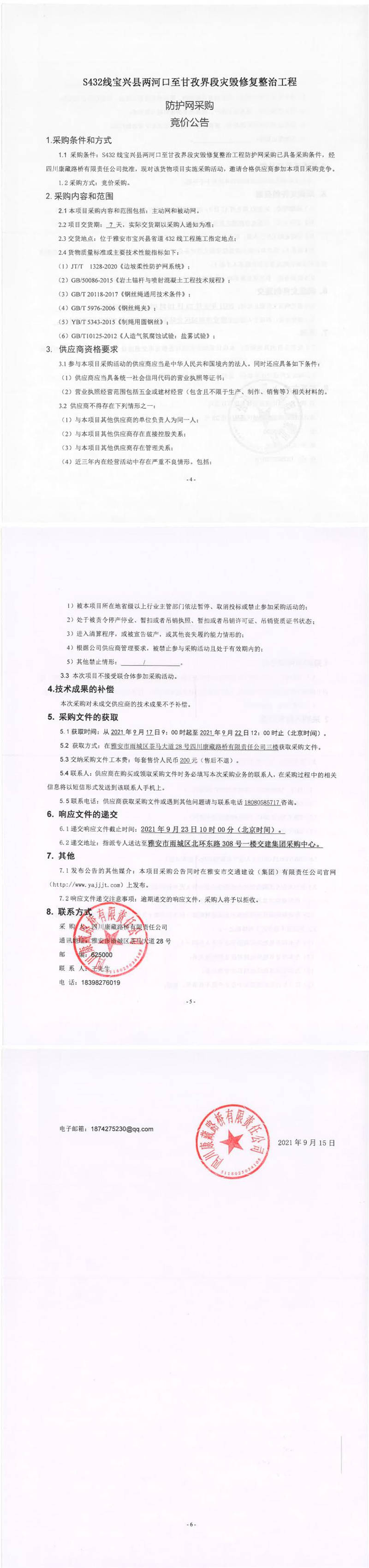 四川康藏路橋有限責任公司S432線寶興縣兩河口至甘孜界段災毀修復整治工程防護網采購競價公告