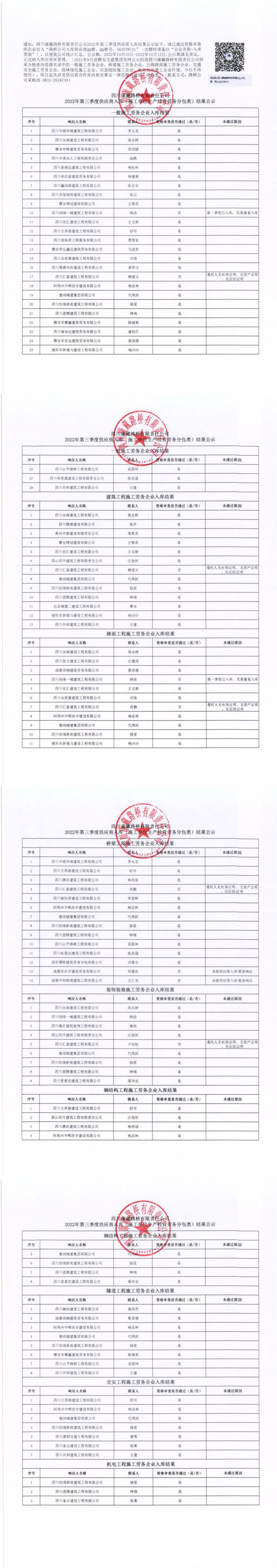 四川康藏路橋有限責任公司2022年第三季度供應商入庫(施工單位生產經營勞務分包類)結果公示