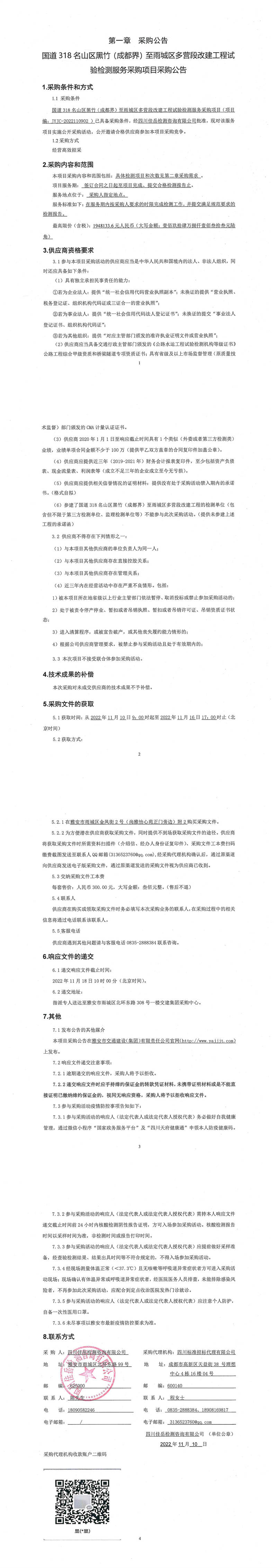 四川佳岳檢測(cè)咨詢有限公司國(guó)道318名山區(qū)黑竹(成都界)至雨城區(qū)多營(yíng)段改建工程試驗(yàn)檢測(cè)服務(wù)采購項(xiàng)目采購公告