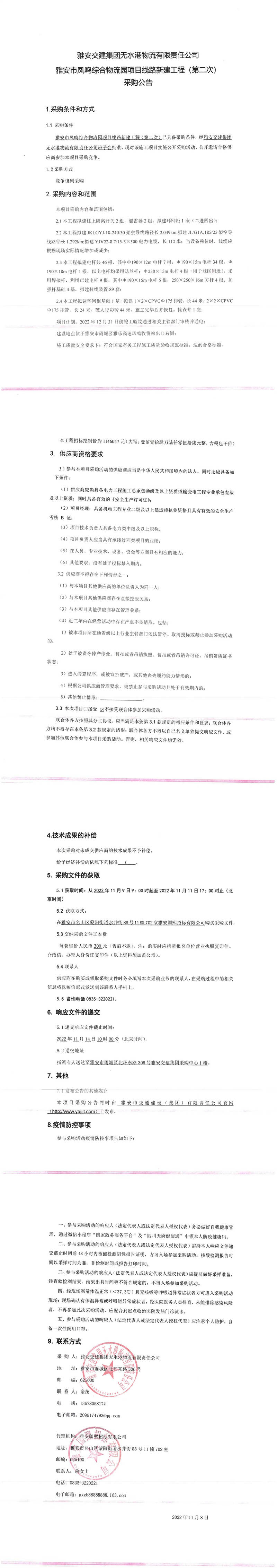 雅安交建集團無水港物流有限責任公司雅安市鳳鳴綜合物流園項目線路新建工程(第二次)采購公告