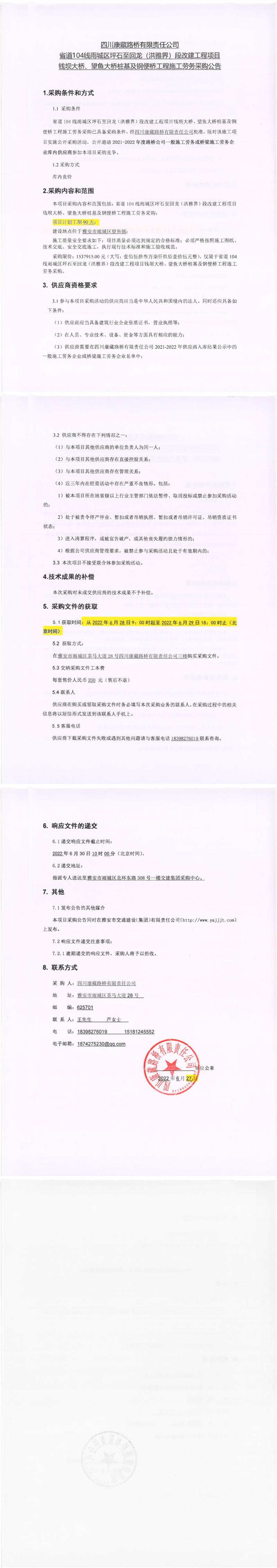四川康藏路橋有限責(zé)任公司省道104線(xiàn)雨城區(qū)坪石至回龍(洪雅界)段改建工程項(xiàng)目錢(qián)壩大橋、望魚(yú)大橋樁基及鋼便橋工程施工勞務(wù)采購(gòu)公告