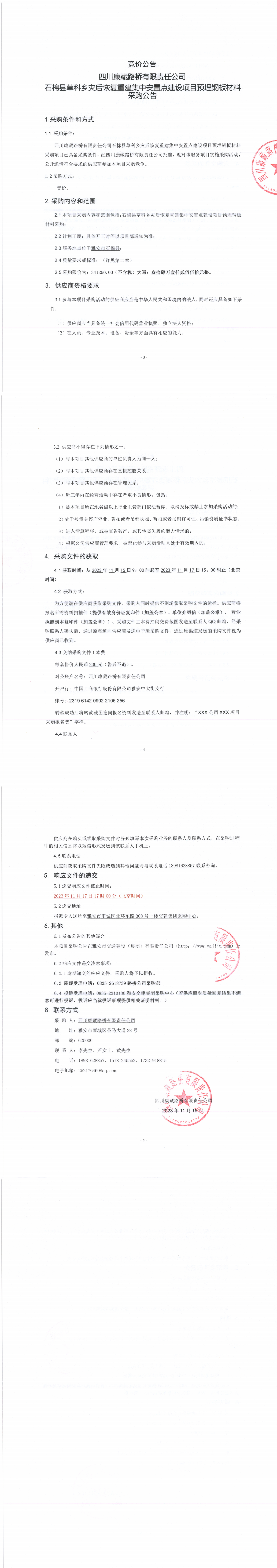 四川康藏路橋有限責(zé)任公司石棉縣草科鄉(xiāng)災(zāi)后恢復(fù)重建集中安置點建設(shè)項目預(yù)埋鋼板材料采購公告