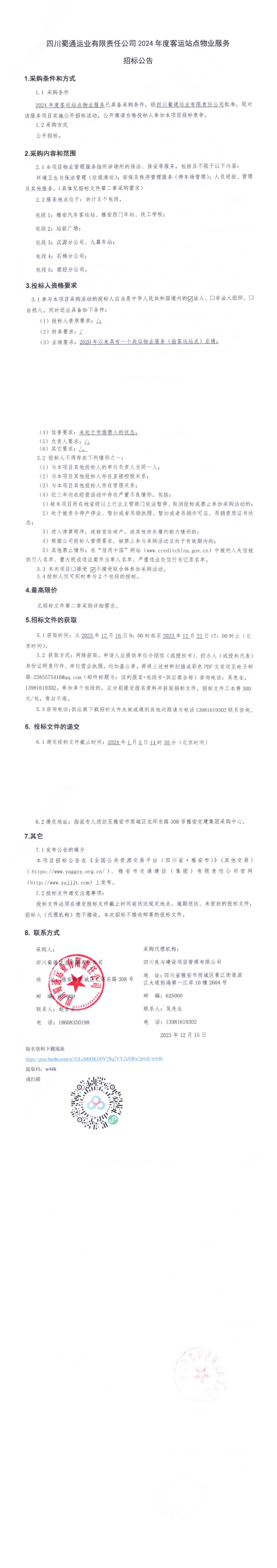 四川蜀通運業(yè)有限責(zé)任公司2024年度客運站點物業(yè)服務(wù)招標(biāo)公告