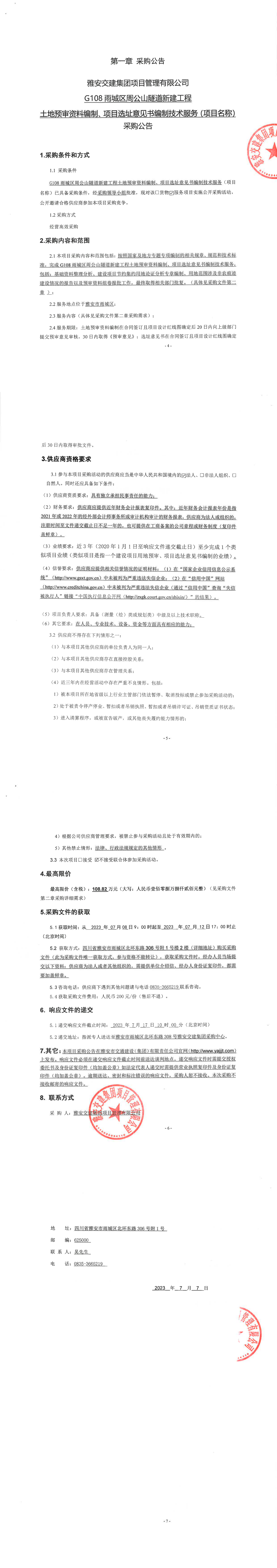 雅安交建集團(tuán)項(xiàng)目管理有限公司G108雨城區(qū)周公山隧道新建工程土地預(yù)審資料編制、項(xiàng)目選址意見(jiàn)書編制技術(shù)服務(wù)(項(xiàng)目名稱)采購(gòu)公告