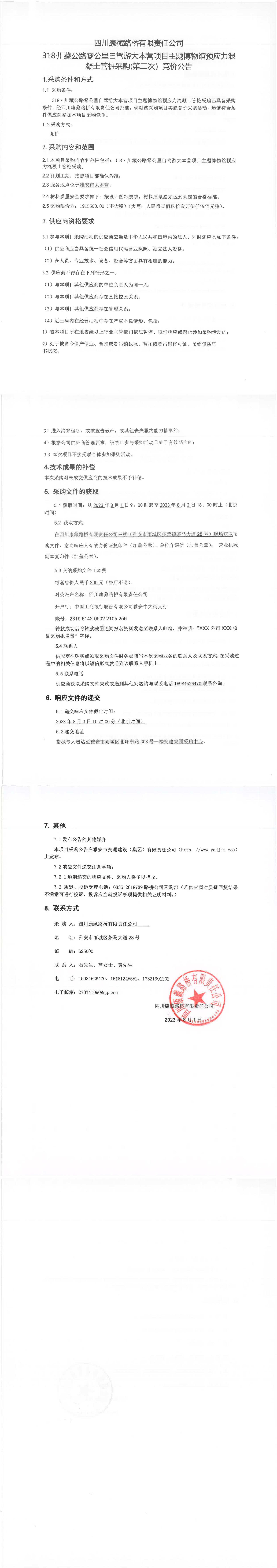 四川康藏路橋有限責(zé)任公司318·川藏公路零公里自駕游大本營項目主題博物館預(yù)應(yīng)力混凝土管樁采購(第二次)競價公告