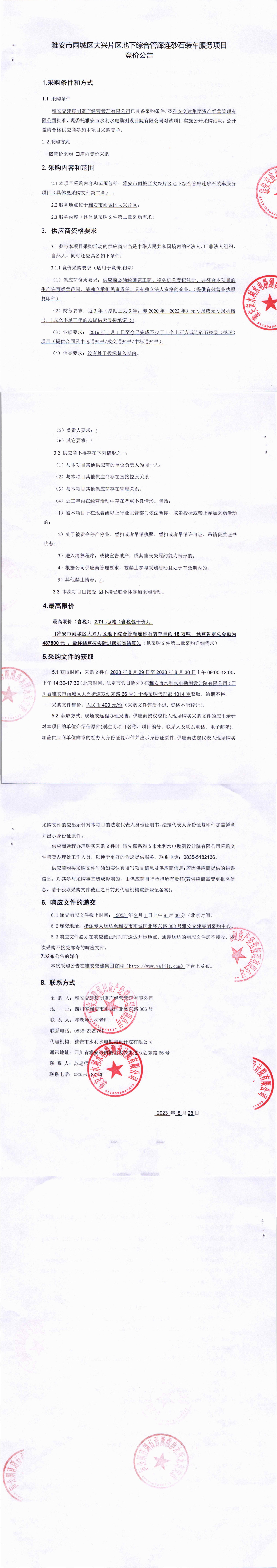 雅安交建集團(tuán)資產(chǎn)經(jīng)營(yíng)管理有限公司雅安市雨城區(qū)大興片區(qū)地下綜合管廊連砂石裝車服務(wù)項(xiàng)目競(jìng)價(jià)公告