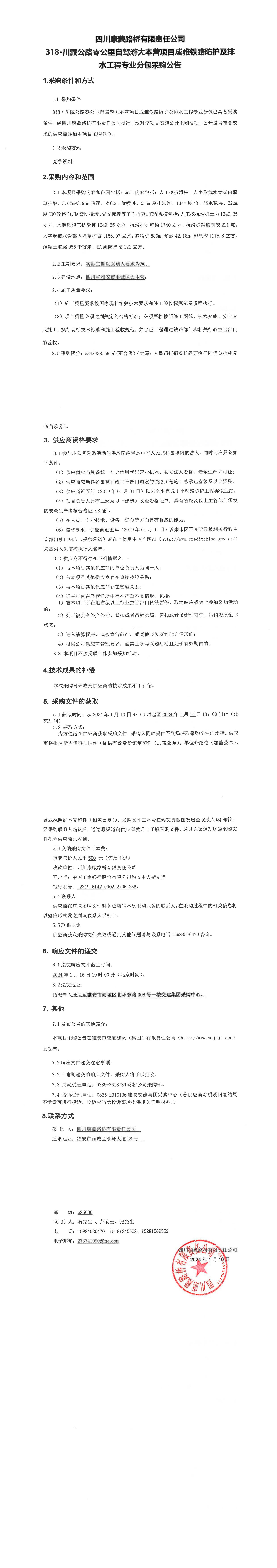 四川康藏路橋有限責(zé)任公司318·川藏公路零公里自駕游大本營項目成雅鐵路防護(hù)及排水工程專業(yè)分包采購公告