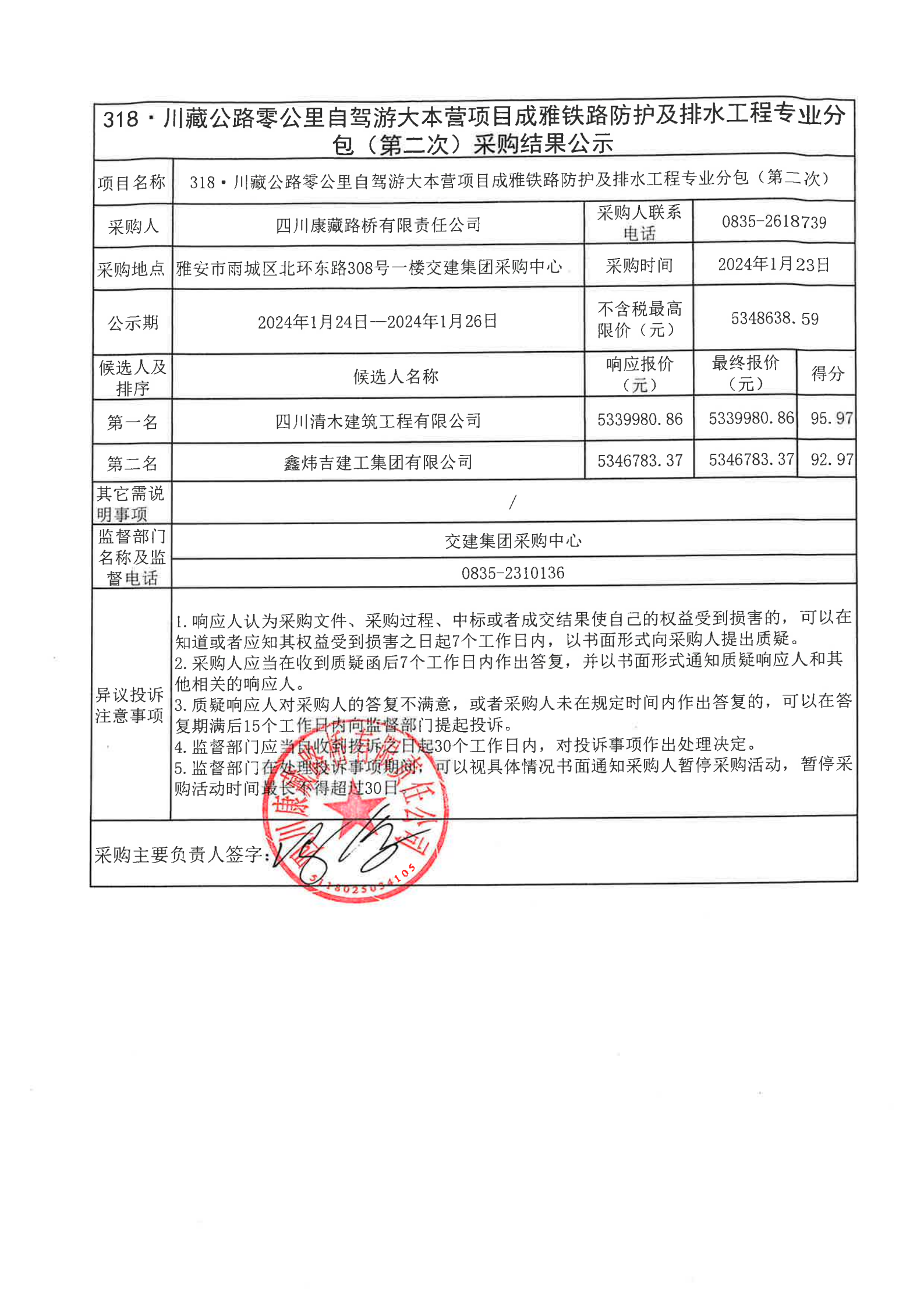 四川康藏路橋有限責(zé)任公司318·川藏公路零公里自駕游大本營項目成雅鐵路防護(hù)及排水工程專業(yè)分包(第二次)采購結(jié)果公示