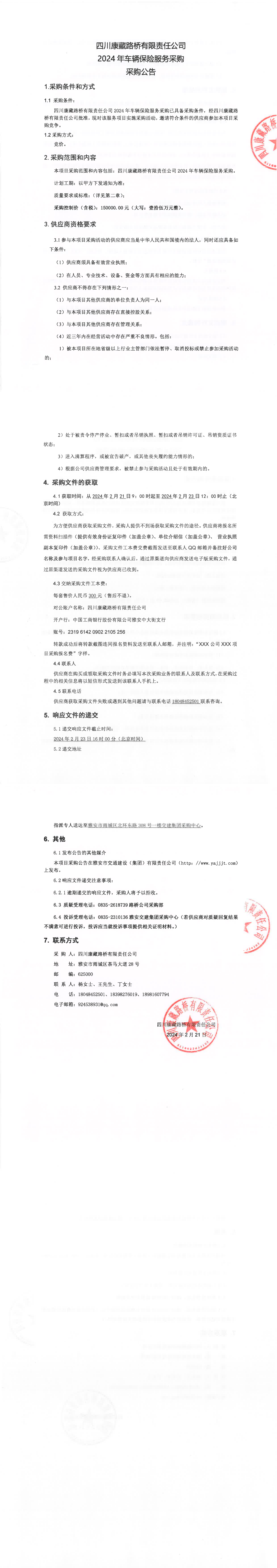 四川康藏路橋有限責(zé)任公司2024年車輛保險(xiǎn)服務(wù)采購公告