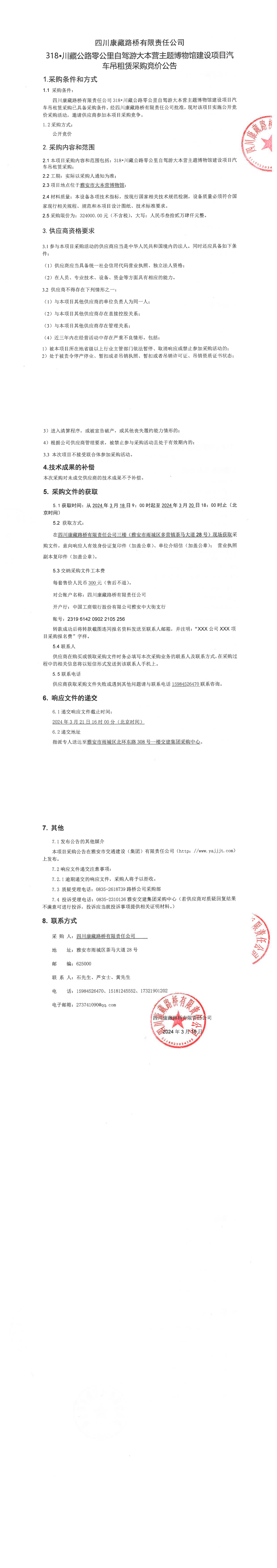 四川康藏路橋有限責(zé)任公司318·川藏公路零公里自駕游大本營文化旅游基礎(chǔ)設(shè)施建設(shè)項目文明環(huán)保設(shè)施、設(shè)備采購及安裝競價公告