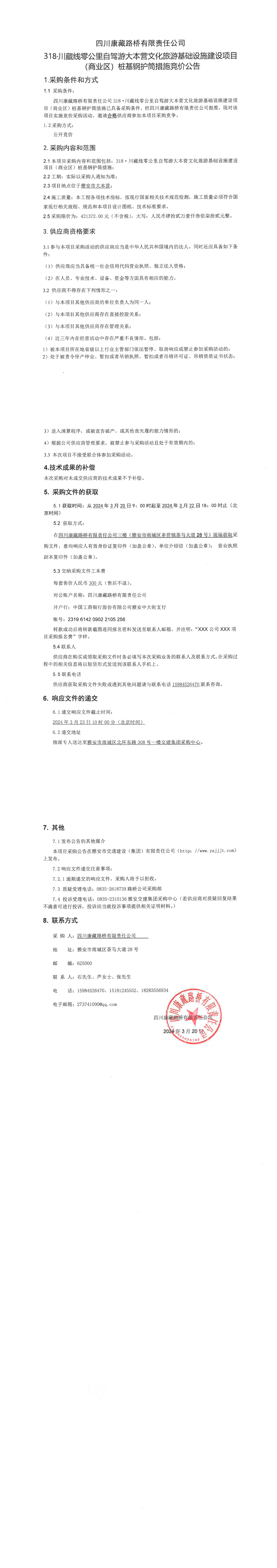 四川康藏路橋有限責(zé)任公司318·川藏公路零公里自駕游大本營文化旅游基礎(chǔ)設(shè)施建設(shè)項(xiàng)目(商業(yè)區(qū))樁基鋼護(hù)筒措施競價公告