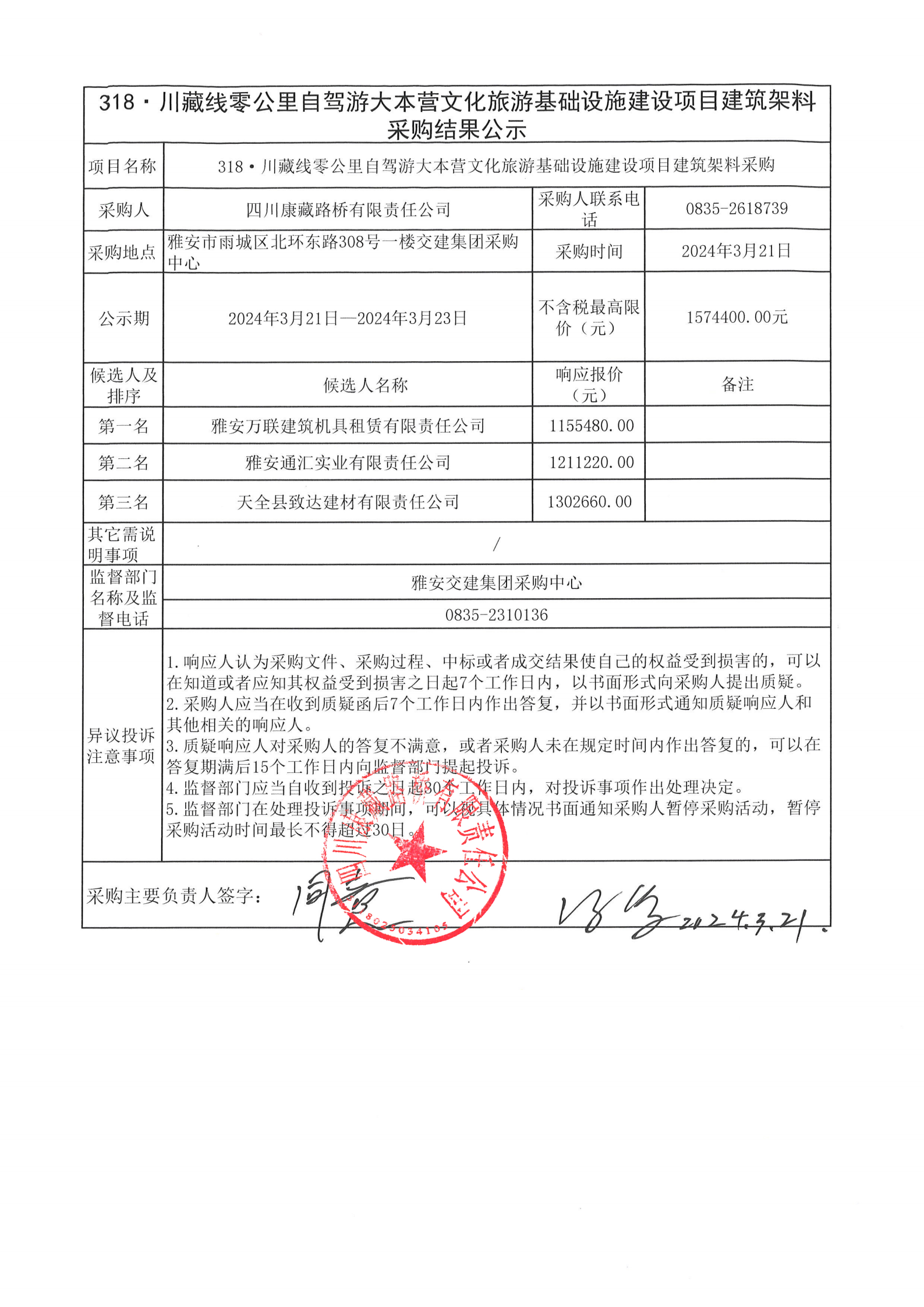 四川康藏路橋有限責(zé)任公司318·川藏線(xiàn)零公里自駕游大本營(yíng)文化旅游基礎(chǔ)設(shè)施建設(shè)項(xiàng)目建筑架料租賃采購(gòu)結(jié)果公示