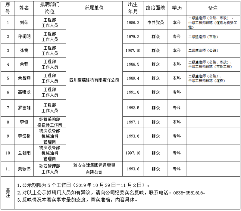 雅安交建集團關(guān)于公開招聘所屬子公司工程項目主要負責人的公告(路橋公司)