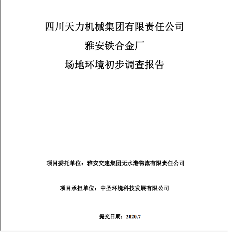 四川天力機(jī)械集團(tuán)有限責(zé)任公司——雅安鐵合金廠(chǎng)場(chǎng)地環(huán)境初步調(diào)查報(bào)告