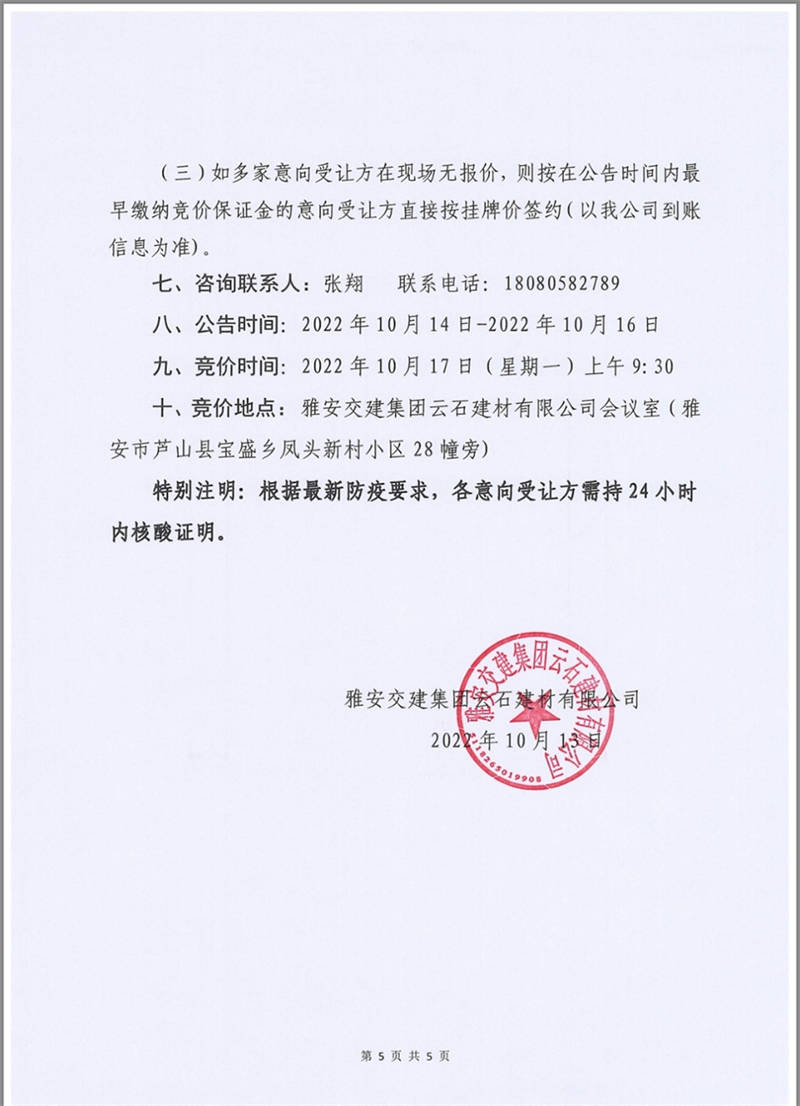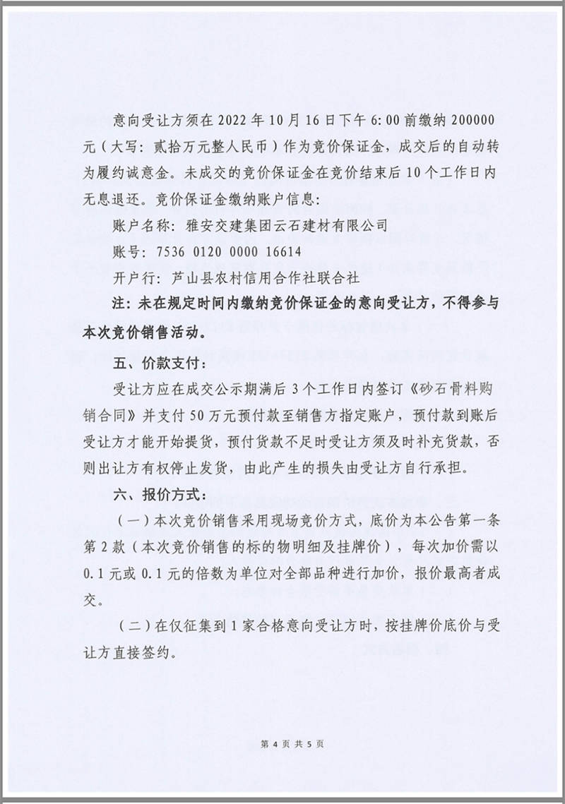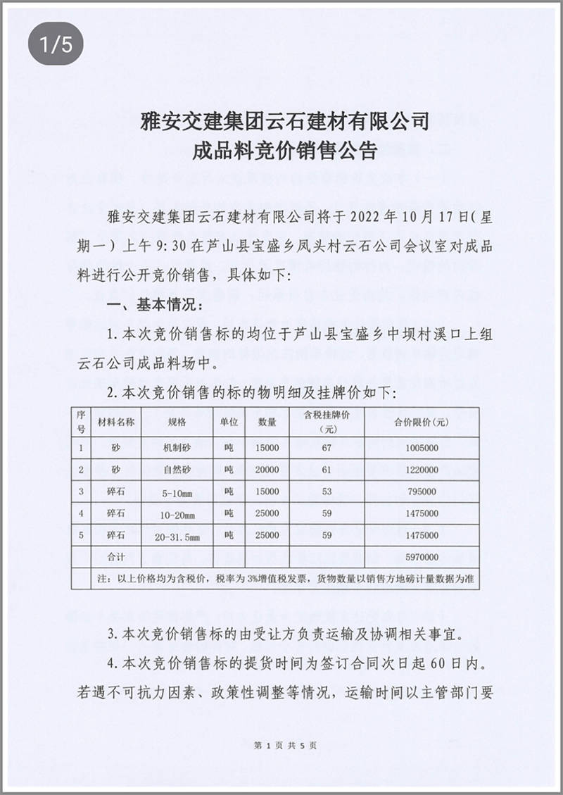 雅安交建集團(tuán)云石建材公司成品料競價(jià)銷售公告10.13