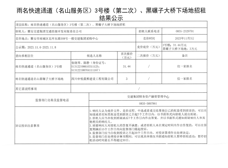 ÑŰ²½»½¨¼¯ˆF½»Í¨ÙYÔ´é_°l(f¨¡)ÓÐÏÞØŸÈι«Ë¾ÓêÃû¿ìËÙͨµÀ£¨Ãûɽ·þ„Õ…^(q¨±)£©3Ì–˜Ç£¨µÚ¶þ´Î£©ºÚÄë×Ó´ó˜òψöµØÕÐ×â½Y(ji¨¦)¹û¹«Ê¾