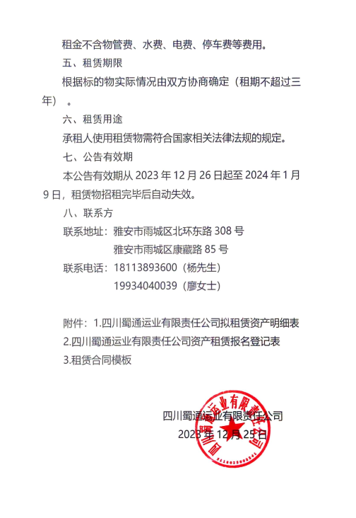 四川蜀通運業(yè)有限責任公司關(guān)于部分商鋪、辦公室對外招租的公告附件: