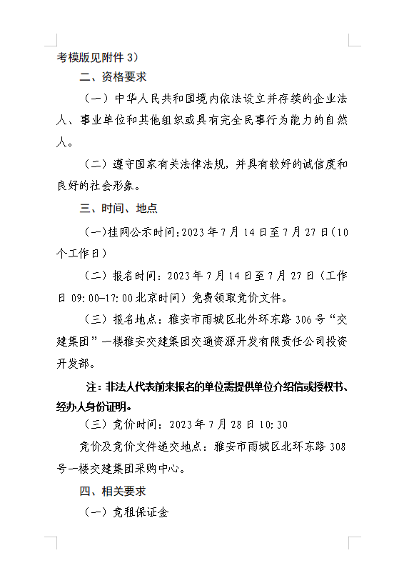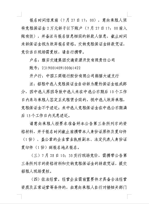 雅安交建集團(tuán)交通資源開發(fā)有限責(zé)任公司雨名快速通道名山服務(wù)區(qū)場地(游樂類項(xiàng)目)招租公告